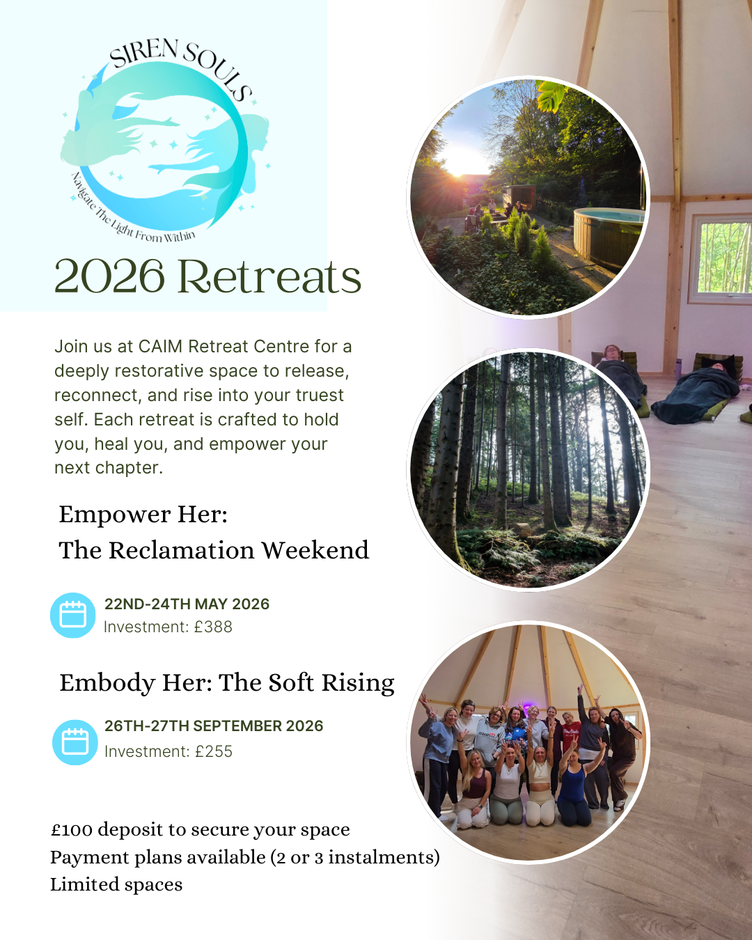 From intimate workshops and retreat days to immersive overnight experiences, Siren Souls is about slowing down, softening, and remembering who you are beneath survival.